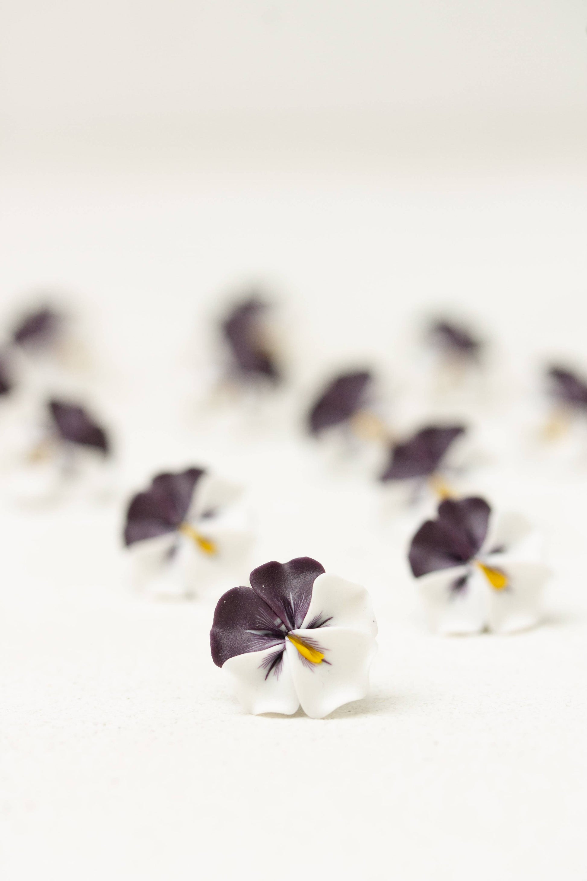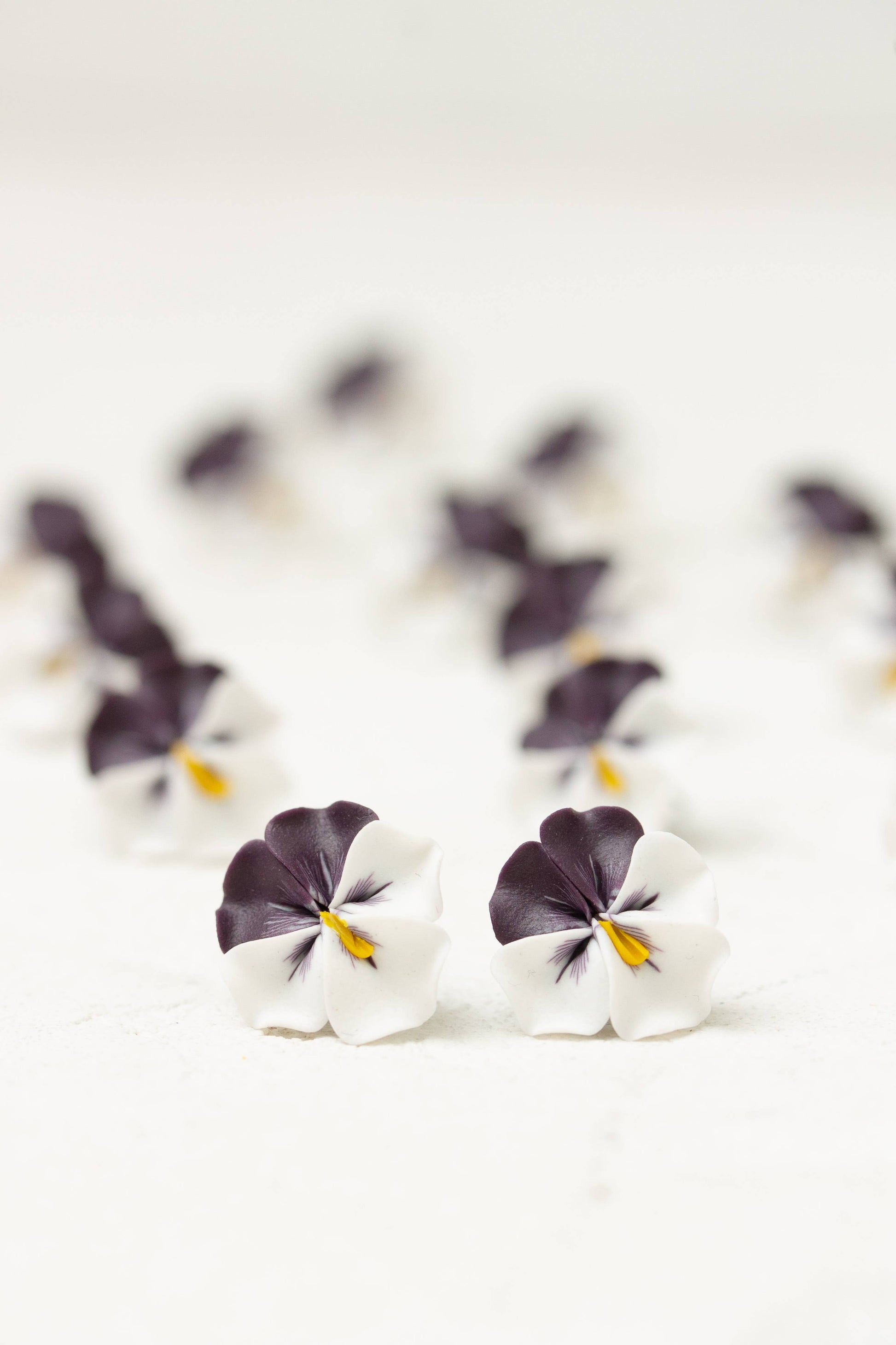 These lightweight polymer clay pansy earrings offer a stylish, Stainless steel studs