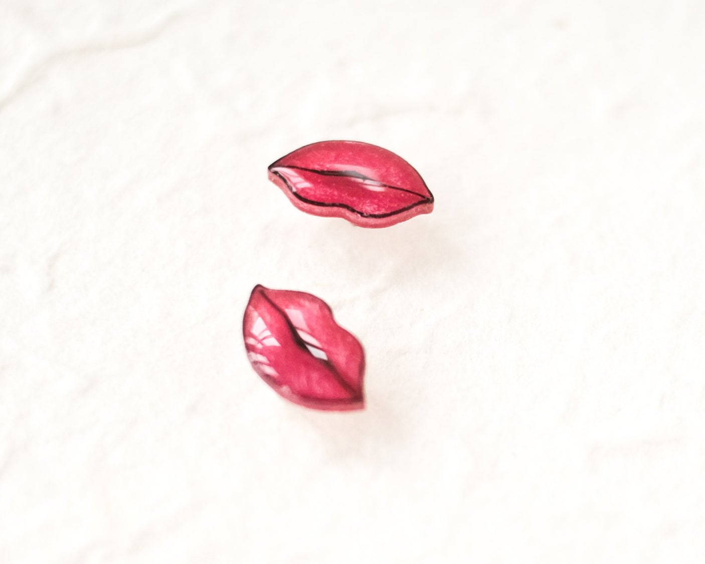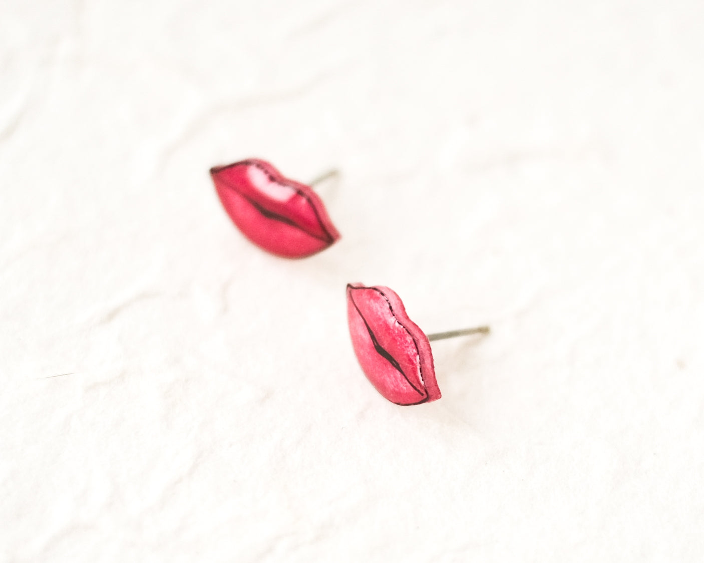 👄 Add a touch of playful charm to any outfit with these small, handmade glossy pink/red lip stud earrings. Crafted with attention to detail, these studs are coated in a high-gloss resin that catches the light beautifully. Lightweight and comfortable, these small red lips make a fun, flirty statement that’s perfect for anyone looking to add a unique touch to their accessory collection. Whether you're celebrating love or adding a hint of romance to your look, these earrings are a delightful choice for Valentine's Day, date nights, or a touch of whimsy any time. 🙌 Each earring is handmade and hand-illustrated, ensuring that no two are exactly alike. The earrings are coated in glossy resin and made with super hypoallergenic nickel-free titanium earring posts - perfect for people with metal sensitivities! 💧 These earrings are highly water resistant, but please care for them by removing before showering or swimming.