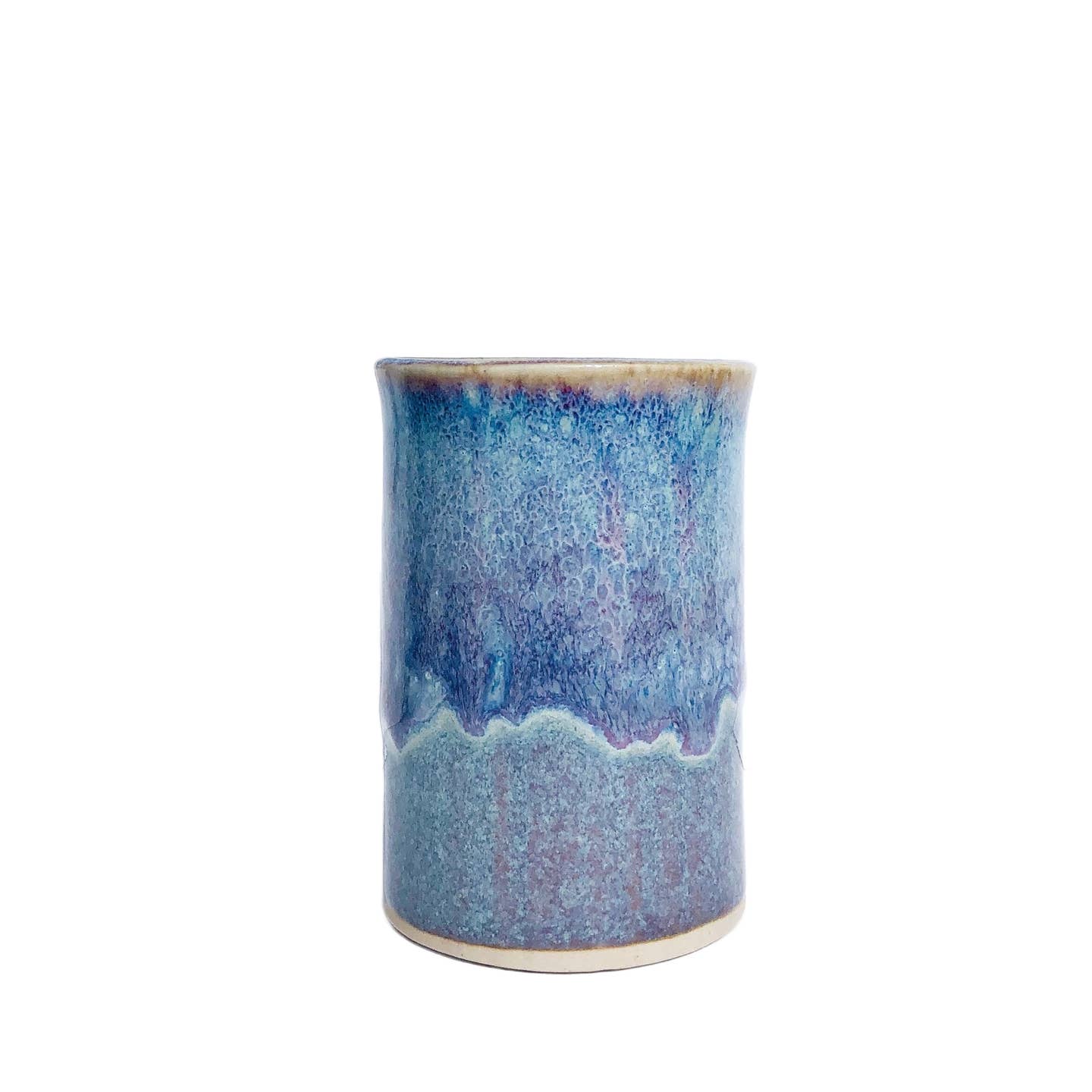 The Bay Pottery tumbler is the perfect versatile holder for the counter-top. All Bay Pottery pieces are designed to be highly functional and are microwave, dishwasher, and oven safe. Popular for holding small utensils and even makes a great small flower vase! Dimensions: Holds 8 Ounces. Stands 4" tall.