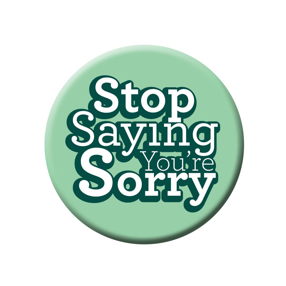 Do you know a person who constantly says she's sorry for everything? Get them this button to remind them to stop saying sorry for just taking up space! 2 1/4" round.
