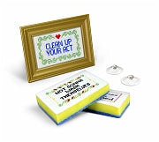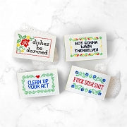 Doing the dishes brings out the surly side in all of us. Show them how you really feel about tedious tasks with Fred's Subversive Sponges. Each set includes 4 unique embroidered poly sponges with a PP gold frame that stands on your countertop or suctions to your sink or tile. Hand wash only. Design by Charlotte Saul from Fred, in cooperation with Subversive Crossstitch.