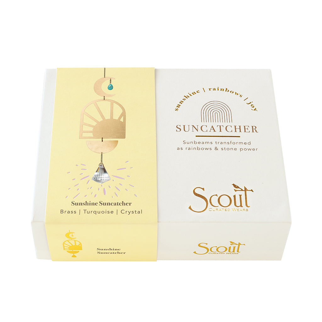 Captured sunlight transforms into beautiful rainbows that spread joy. Crafted from brass, semi precious gemstones and crystal.