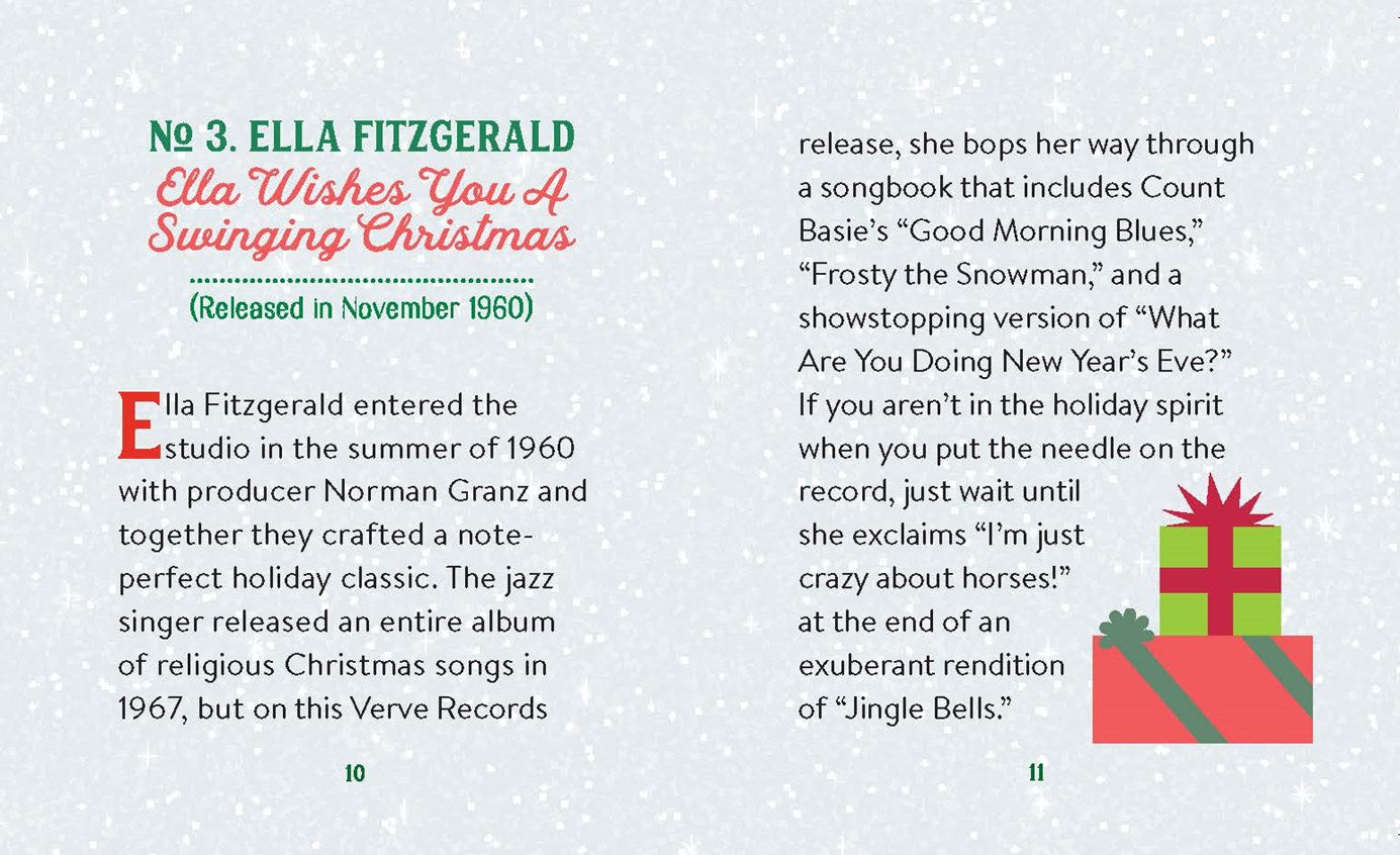 - Miniature book: An illustrated mini book highlights the best Christmas albums and songs of all time