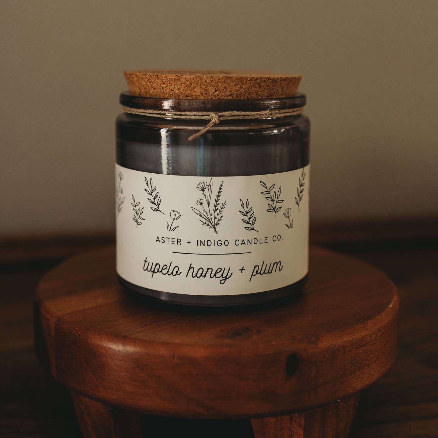 Experience the delicious accord of our Tupelo Honey + Plum candle. The top notes of orange peel are complemented by the heart notes of butter, honey, walnuts, and plum, all enhanced by a base of vanilla, sugar, and cinnamon.