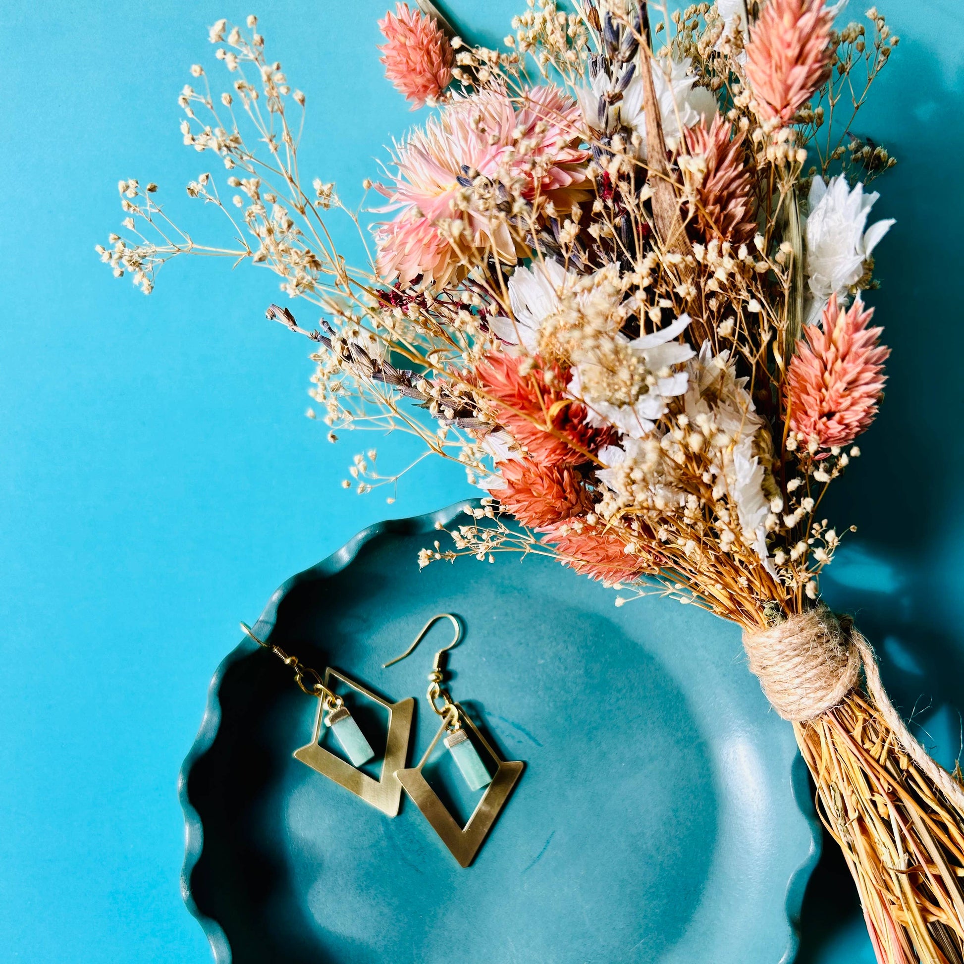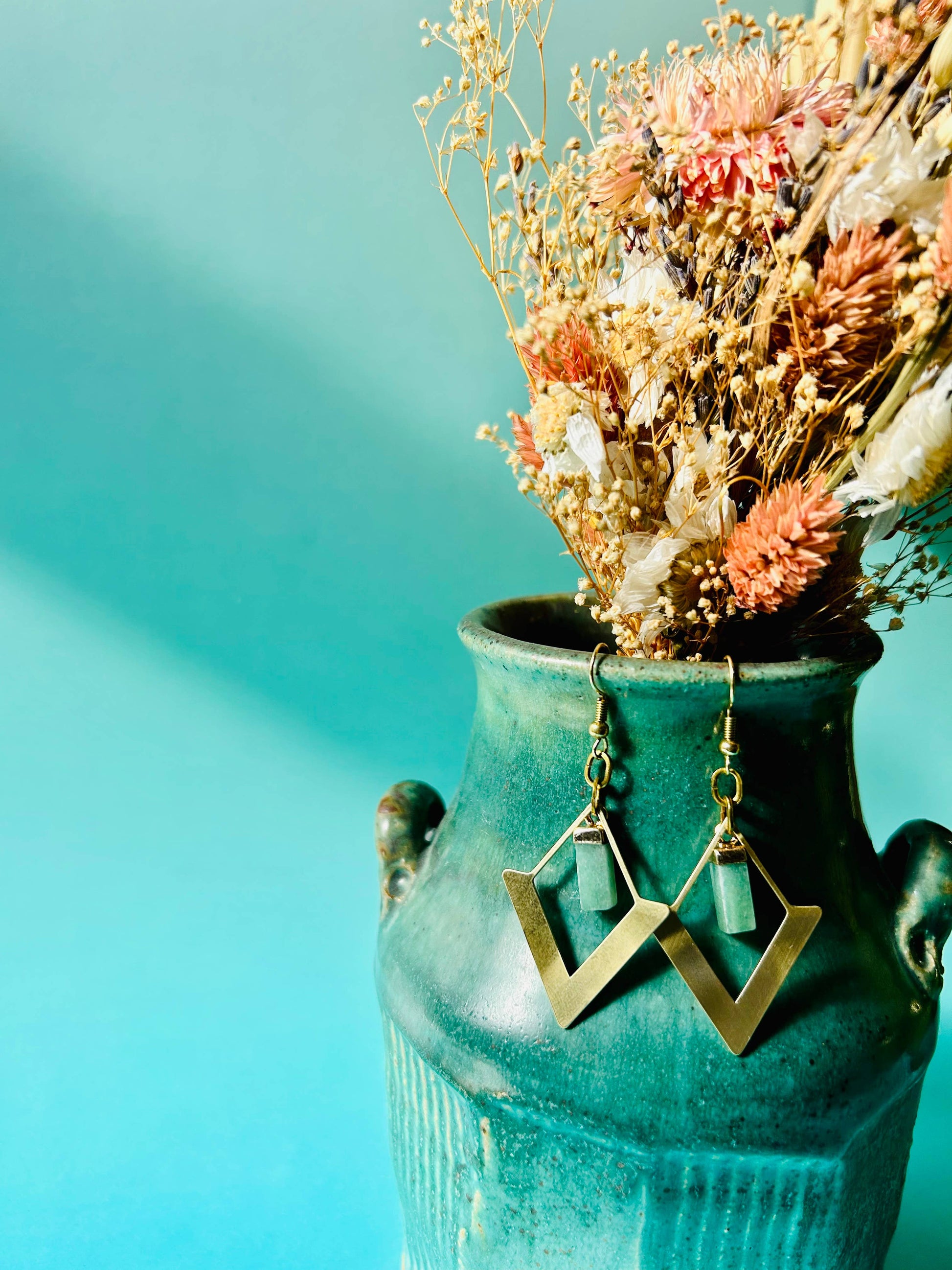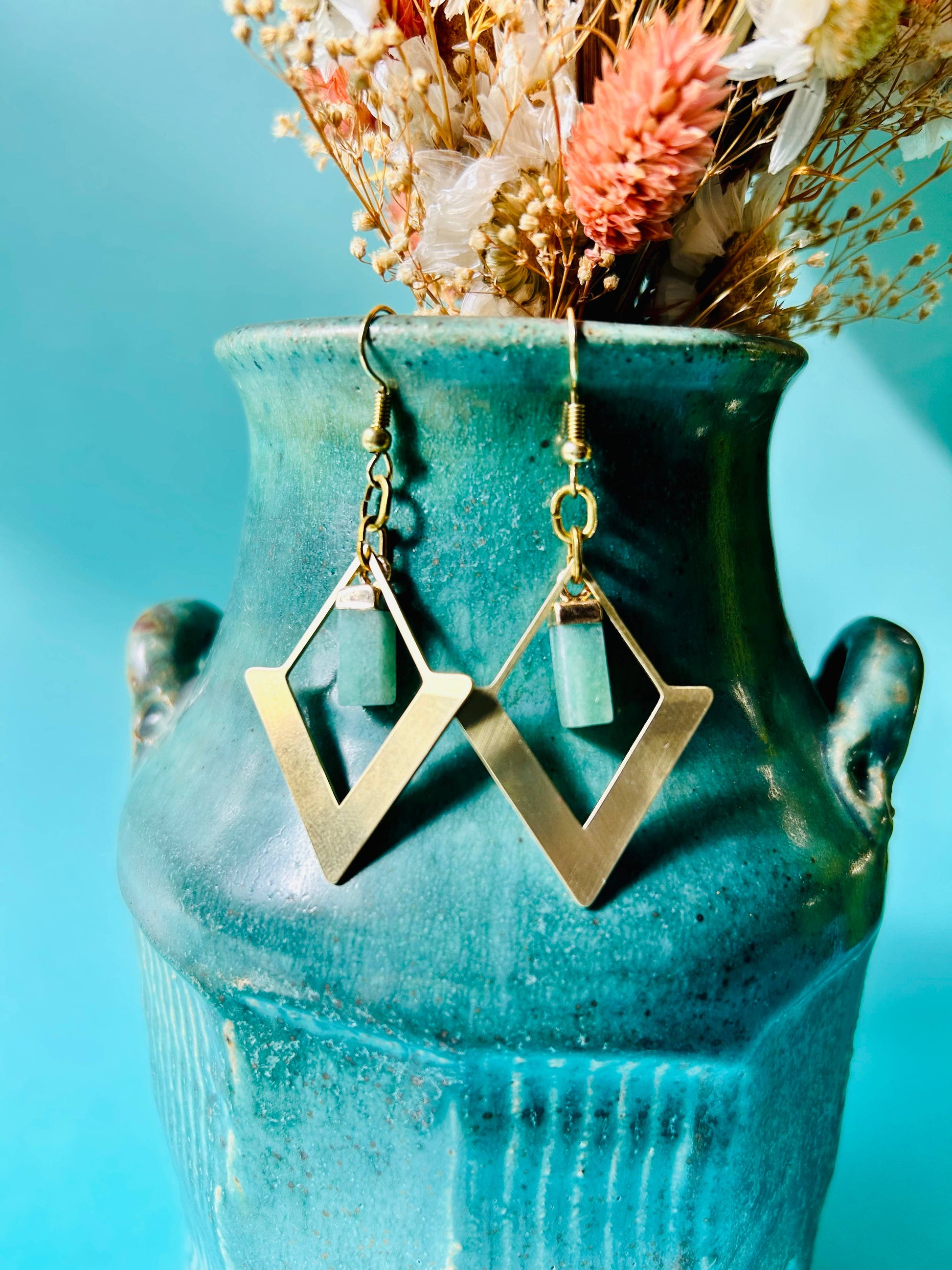 Brass & glass beads -All materials are nickel & lead free. MEASUREMENTS I 1.25” wide, 1.75” long Earrings come displayed on Dear Darlington branded card stock.
