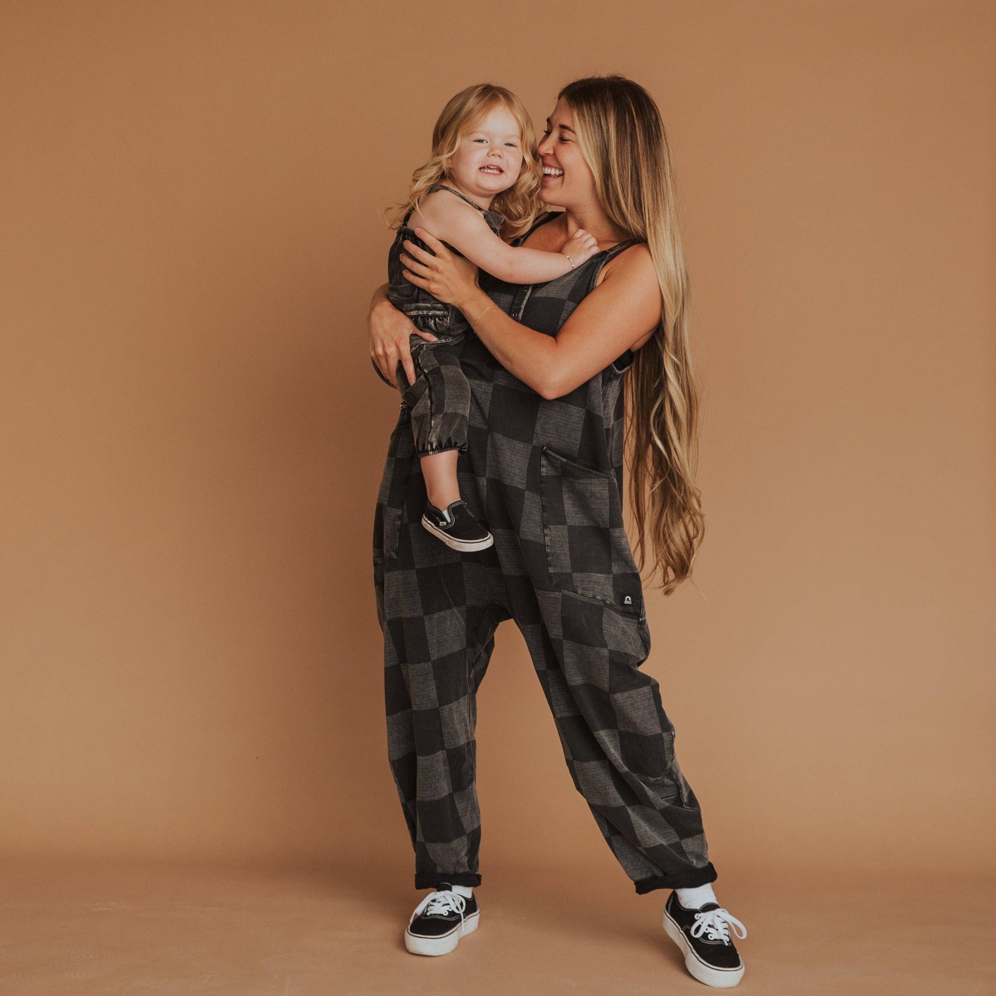 Discover the effortless style and comfort of RAGS' Women's Tank Romper in Black Denim Check. This unique jumpsuit is a testament to our brand's commitment to fashion, fit, and function. Designed for the modern woman, it offers a chic, easy-to-wear alternative to traditional one-pieces. Inspired by the simplicity of a well-dressed kiddo and the functionality needed by every busy woman, this romper is a perfect blend of style and convenience. The patent-pending neck design allows for easy on and off, making it an ideal choice for any activity. Enjoy the quality and innovation that RAGS is known for with this standout piece.