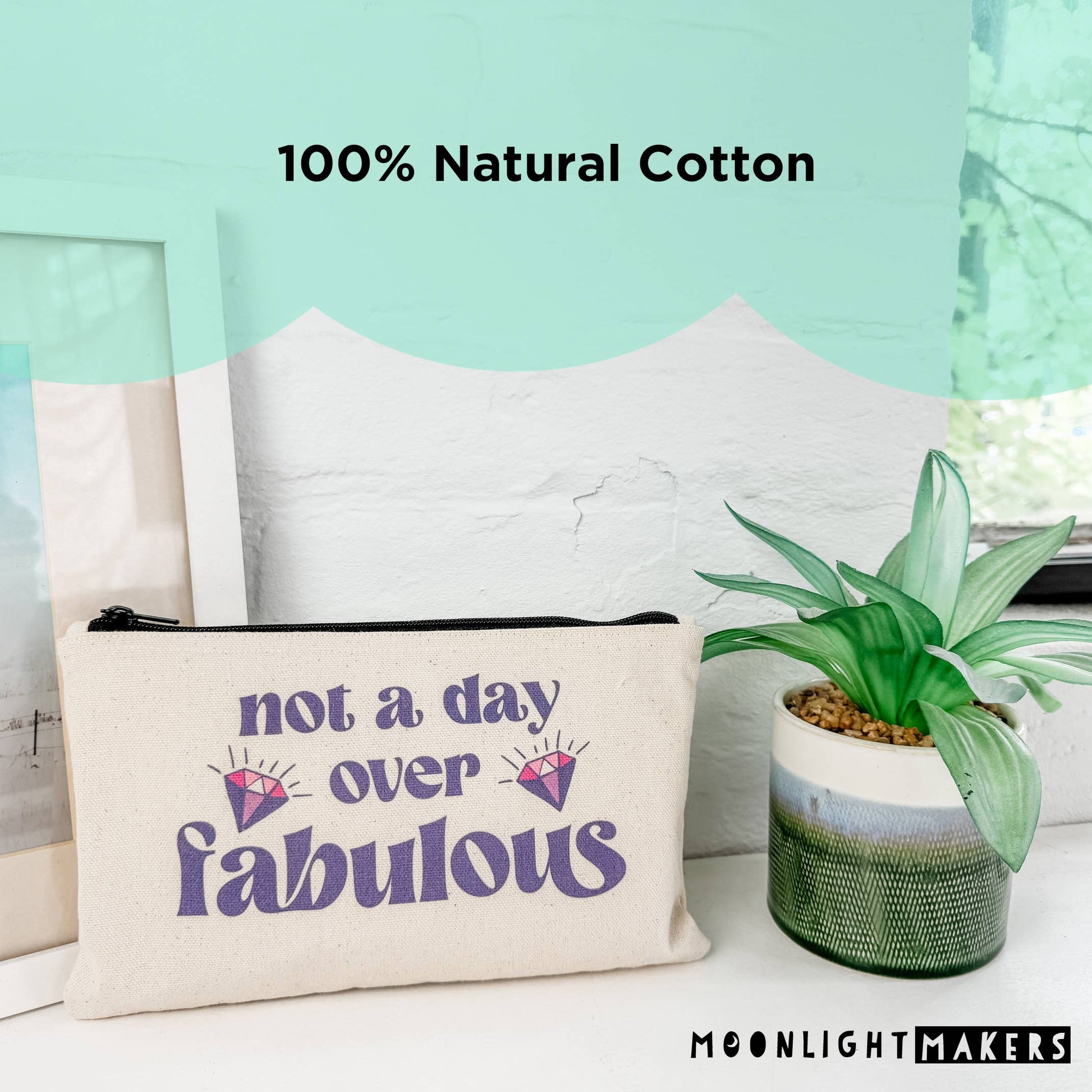 Measuring 10”x6”, it provides ample room for all your makeup must-haves, snacks, pencils, toiletries, medicine, and more. The lightweight cotton material ensures easy portability, making it perfect for on-the-go use. Whether you're a makeup enthusiast or simply someone who appreciates practicality and style, this makeup bag is a versatile addition to your daily routine.